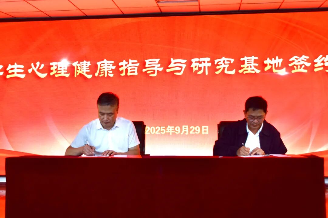 随后,我校党委书记解双箭与长春市第六医院党委书记张延赤共同签署《合作共建协议书》,双方正式确立“学生心理健康指导与实践基地”合作关系。并共同为基地揭牌,标志着我校心理健康服务正式迈入“医疗资源+教育场景”协同育人新阶段。