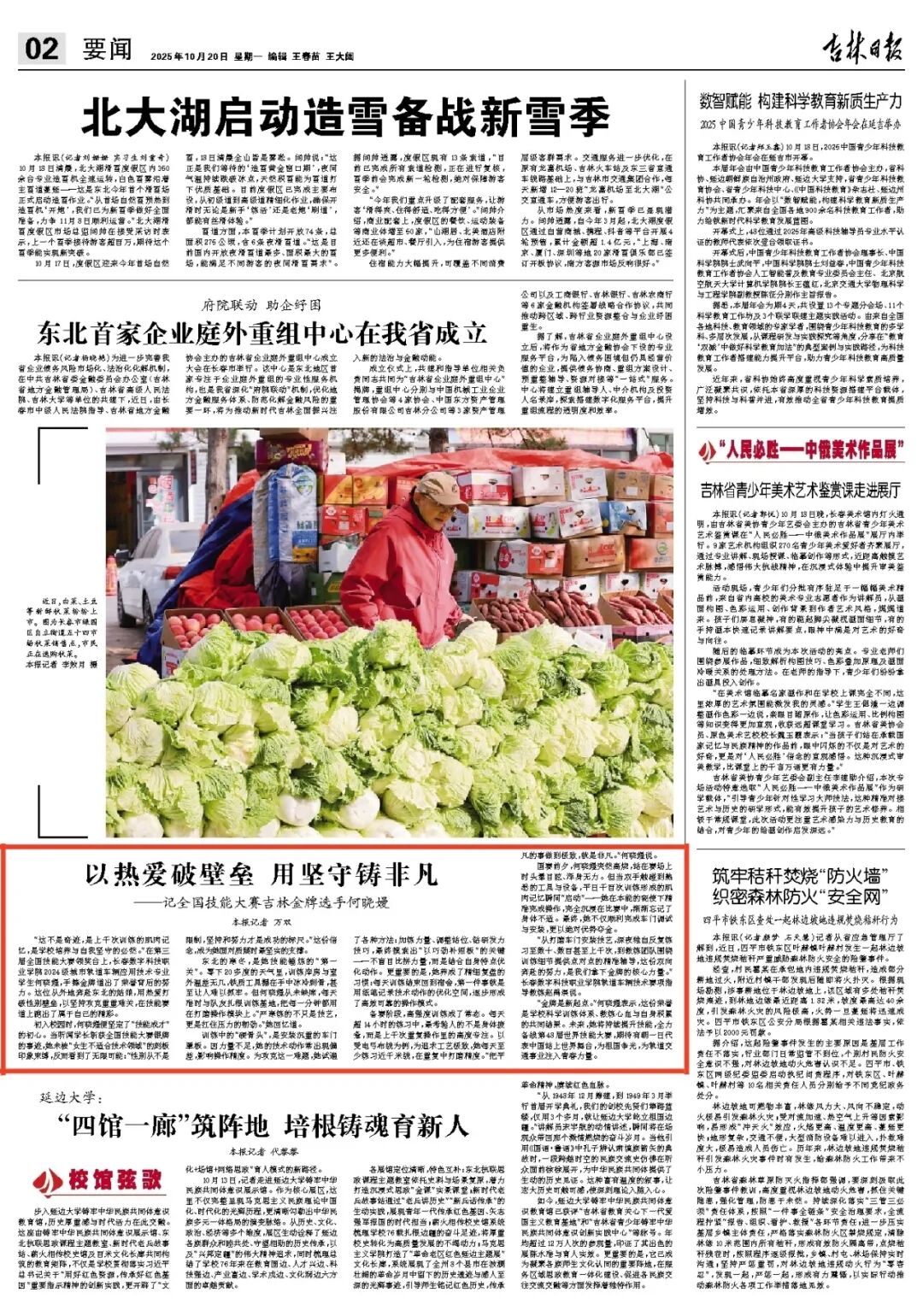 《吉林日报》10月20日,在 “02版要闻” 板块报道我校第三届全国职业技能大赛金牌获得者何晓嫚。
