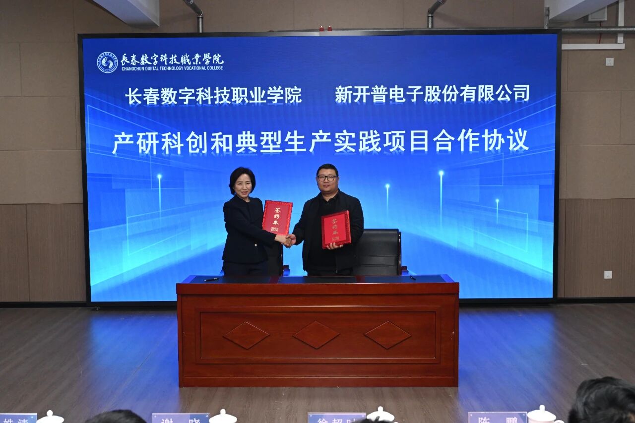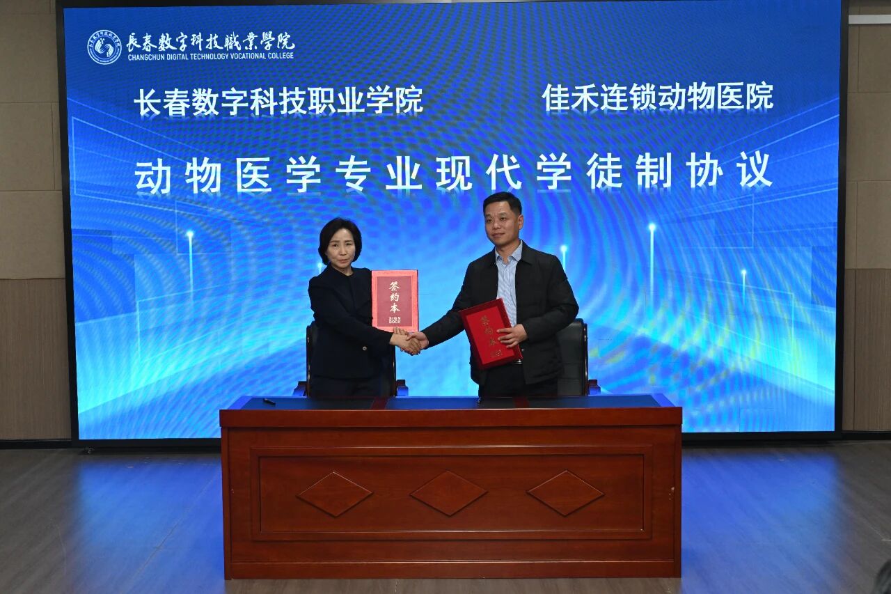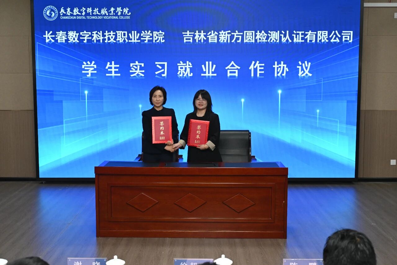 分享结束后,校长闻姝清代表我校与新合作伙伴5家企业的代表签订了合作协议,分别是吉林省新方圆检测认证股份有限公司实习就业基地、海尔智家智能制造类专业订单培养、佳禾动物医院动物医学专业现代学徒制、凤凰数媒北京科技有限公司数字媒体产业学院、新开普电子股份有限公司产研科创和典型生产实践项目合作协议。