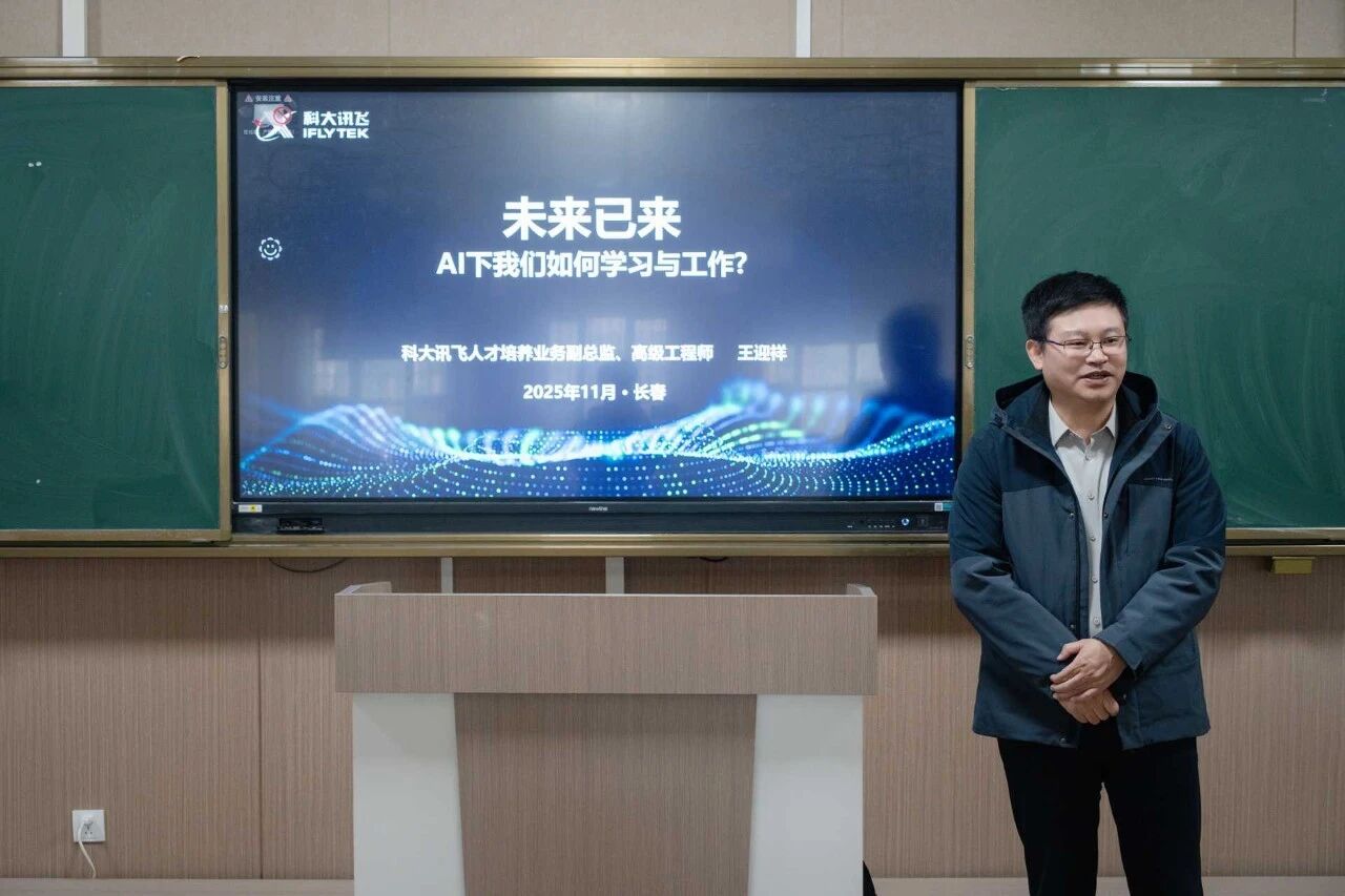 本次讲座以“未来已来——AI下我们如何学习与工作”为主题,科大讯飞股份有限公司人才培养业务部北方区副总监王迎祥担任主讲嘉宾,为来自数智技术学院的300余名师生带来前沿分享,助力同学们近距离感知人工智能产业的最新动态。