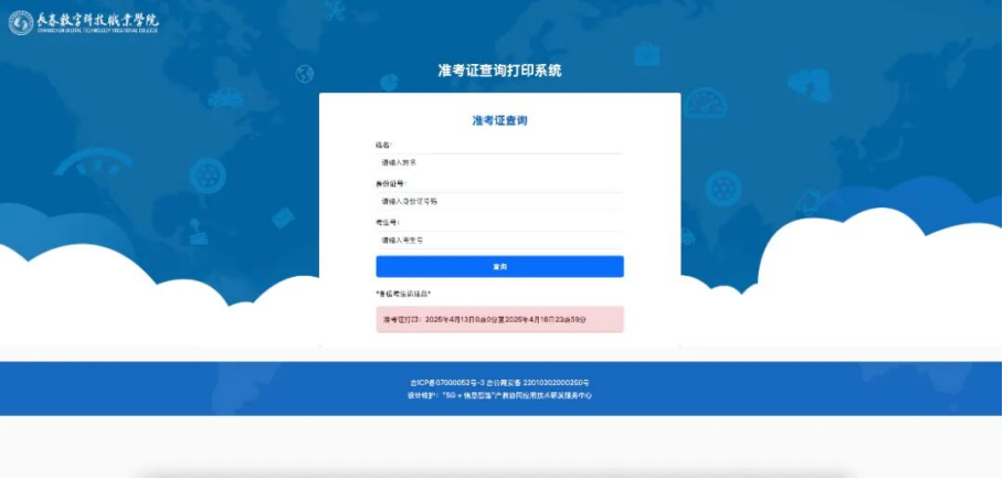 点击“长春数字科技职业学院2026年高职单招准考证打印入口”或“准考证打印入口动态窗口”进入打印准考证页面。