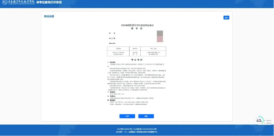 3.登录成功后,点击“打印”按钮,即可打印准考证。